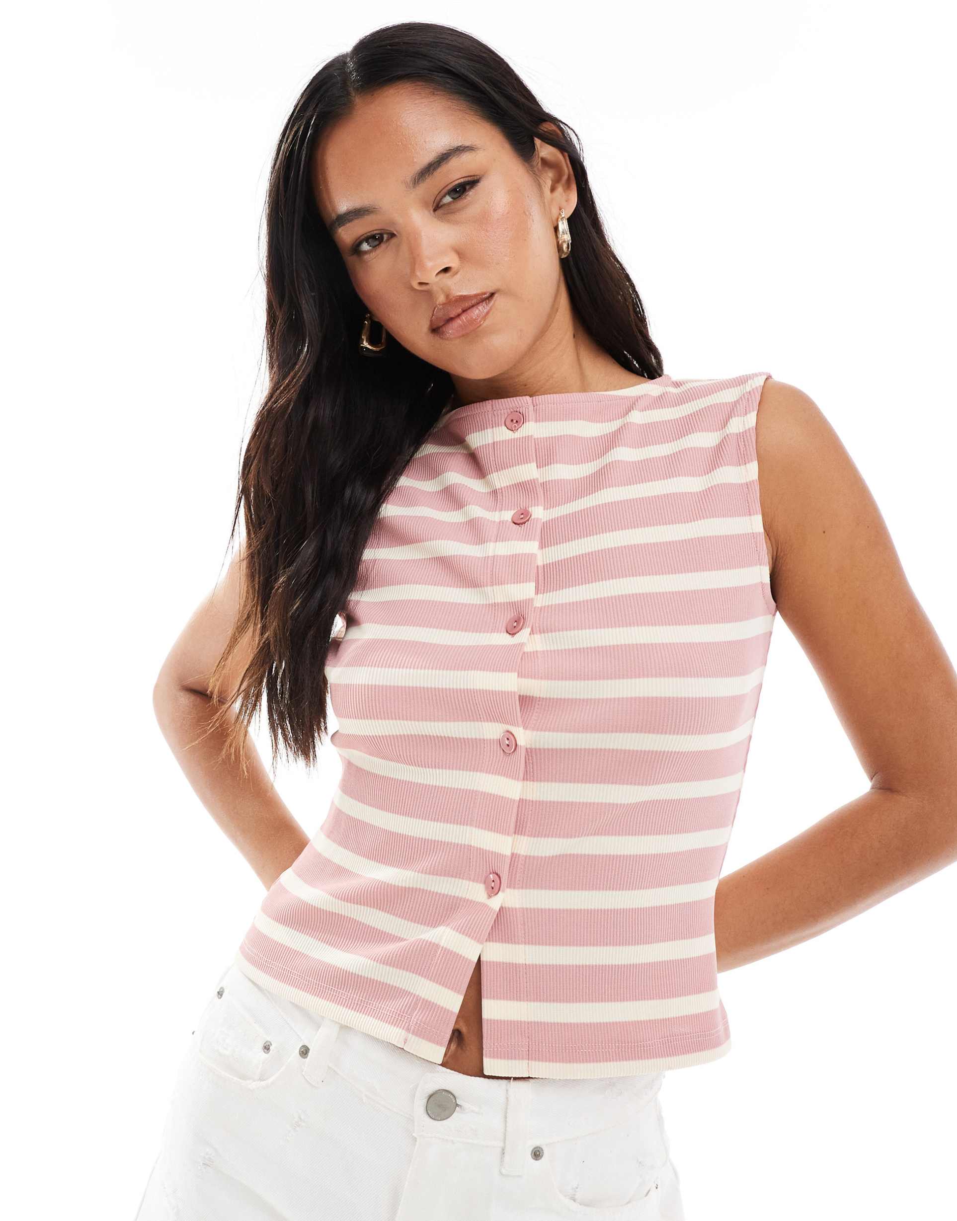 ASOS DESIGN STRIPED SLEEVELESS BUTTON UP TOP IN DUSKY PINK