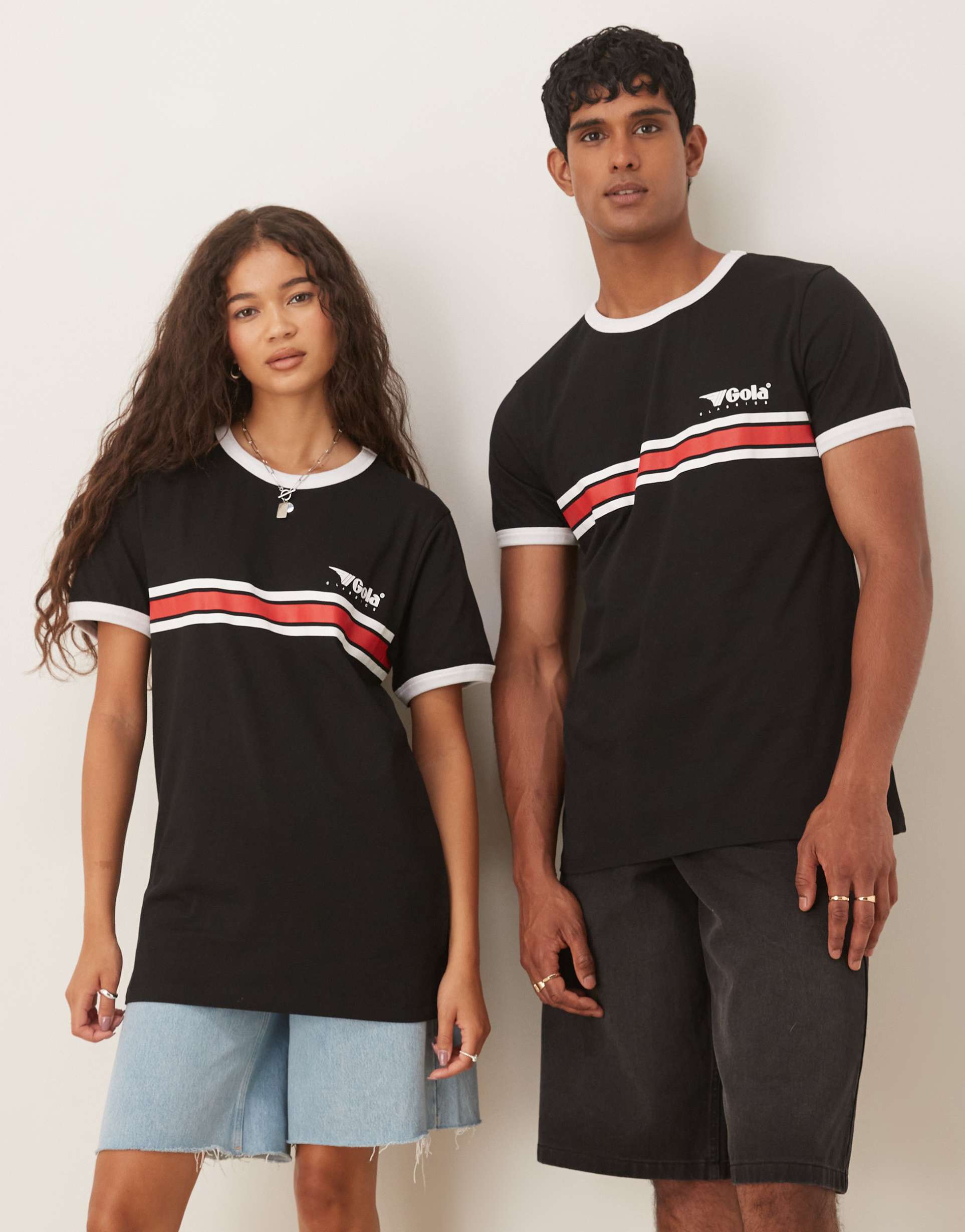 ASOS DESIGN UNISEX GOLA REGULAR FIT T-SHIRT WITH STRIPE DETAILS IN BLACK