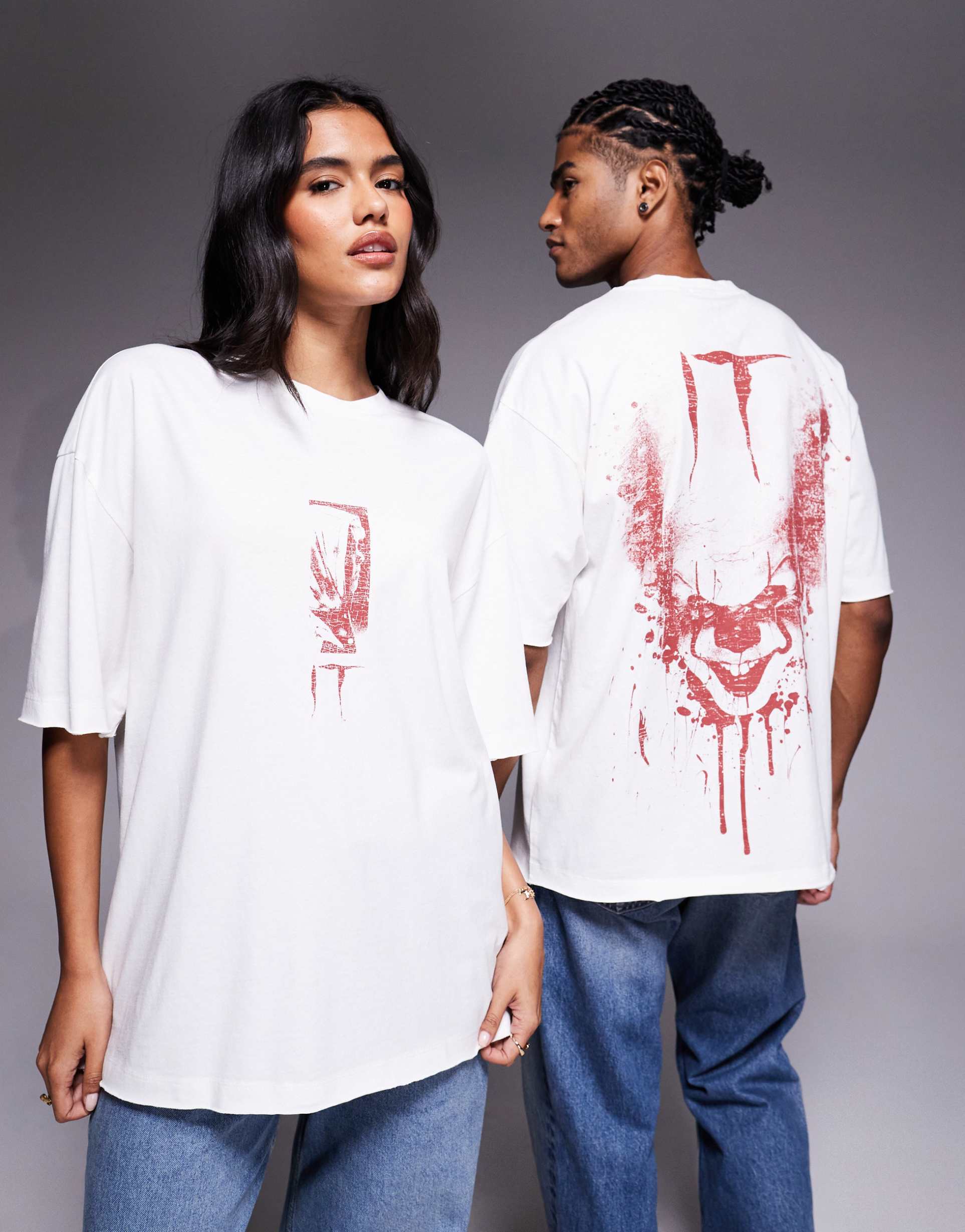 ASOS DESIGN UNISEX OVERSIZED T-SHIRT WITH HALLOWEEN IT PRINT IN WHITE