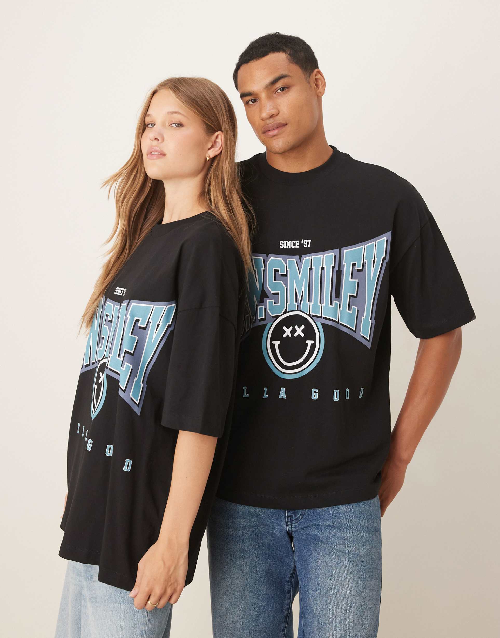 ASOS DESIGN UNISEX OVERSIZED T-SHIRT WITH SMILE PRINT IN BLACK