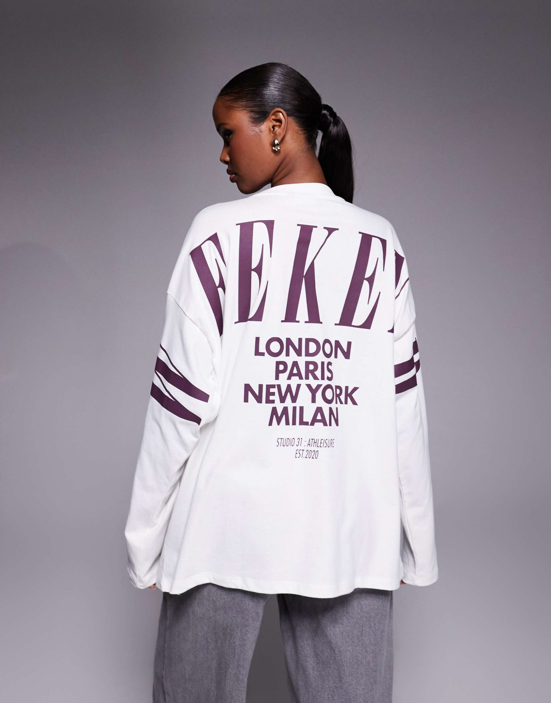 WEEKEND COLLECTIVE ICON LONG SLEEVE T-SHIRT WITH STACKED BACK LOGO IN CREAM AND PLUM