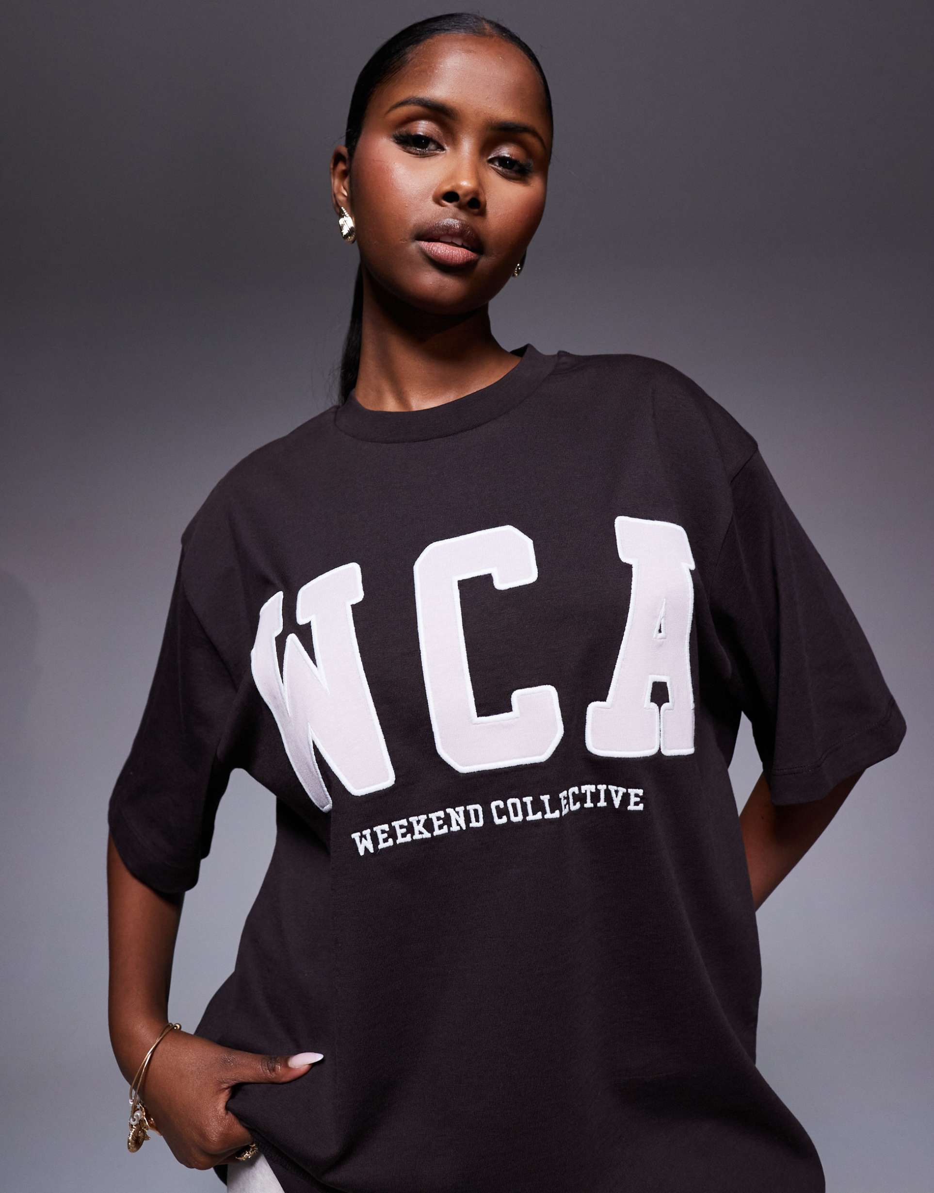 WEEKEND COLLECTIVE ICON OVERSIZED T-SHIRT WITH EMBROIDERED WCA GRAPHIC IN CHOCOLATE