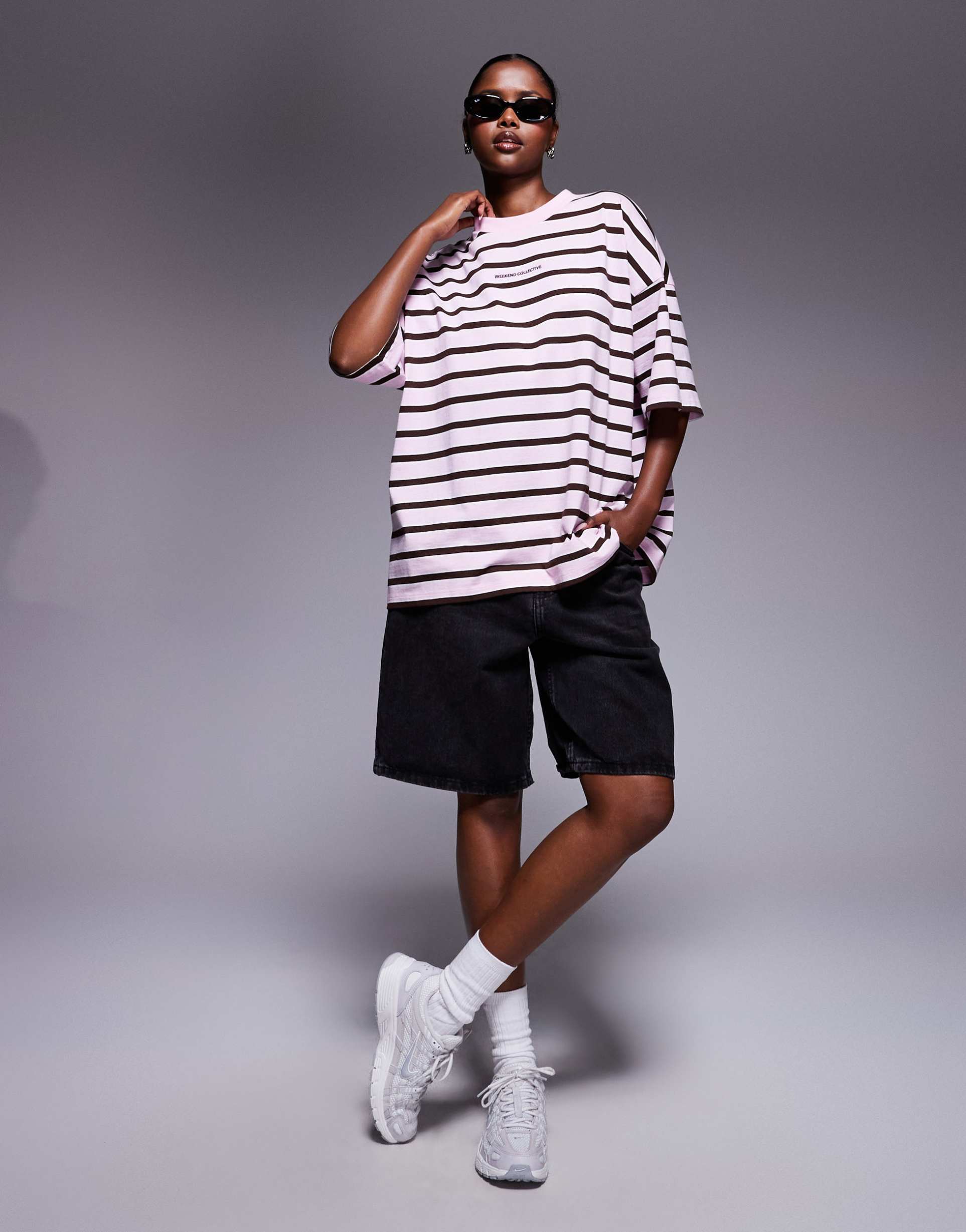 WEEKEND COLLECTIVE OVERSIZED T-SHIRT IN PINK STRIPE