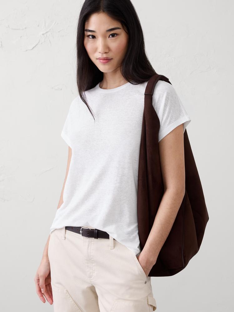 LINEN-BLEND CAP-SLEEVE T-SHIRT