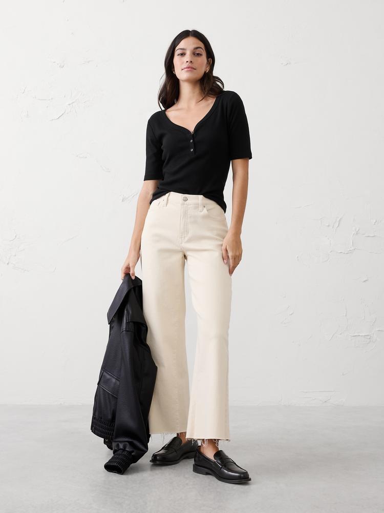 RIBBED ELBOW-SLEEVE HENLEY T-SHIRT
