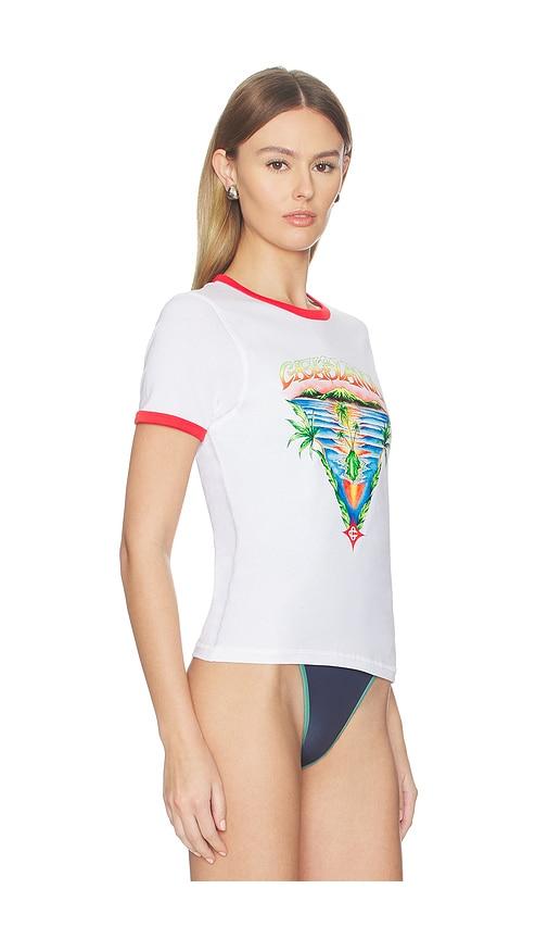 CASABLANCA INNOCENCE TRIANGLE LONGLINE T-SHIRT IN WHITE.
