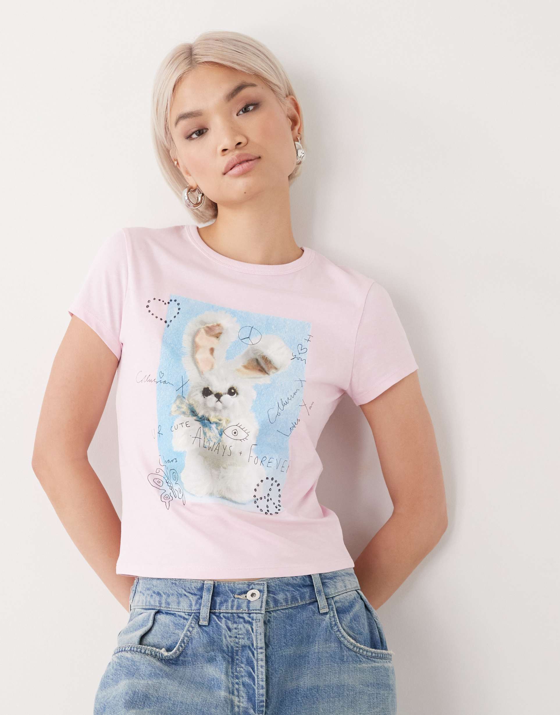 COLLUSION BUNNY GRAPHIC BABY TEE