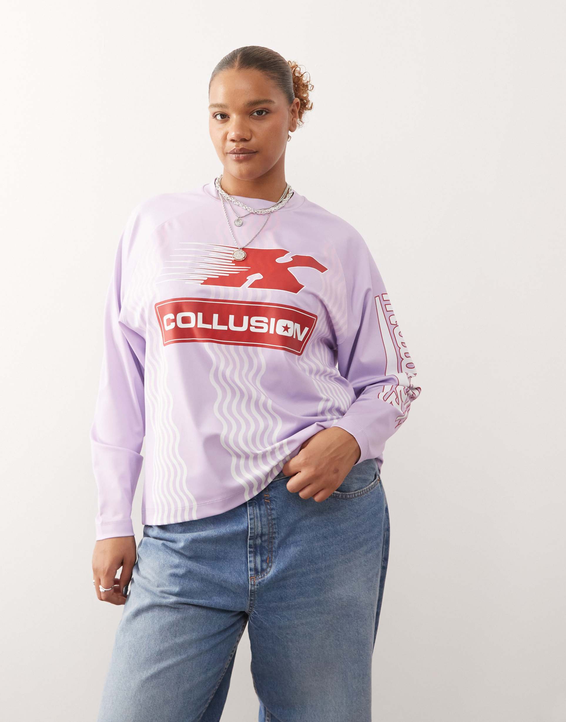 COLLUSION LAVENDER LOGO SOCCER LONG SLEEVE TEE