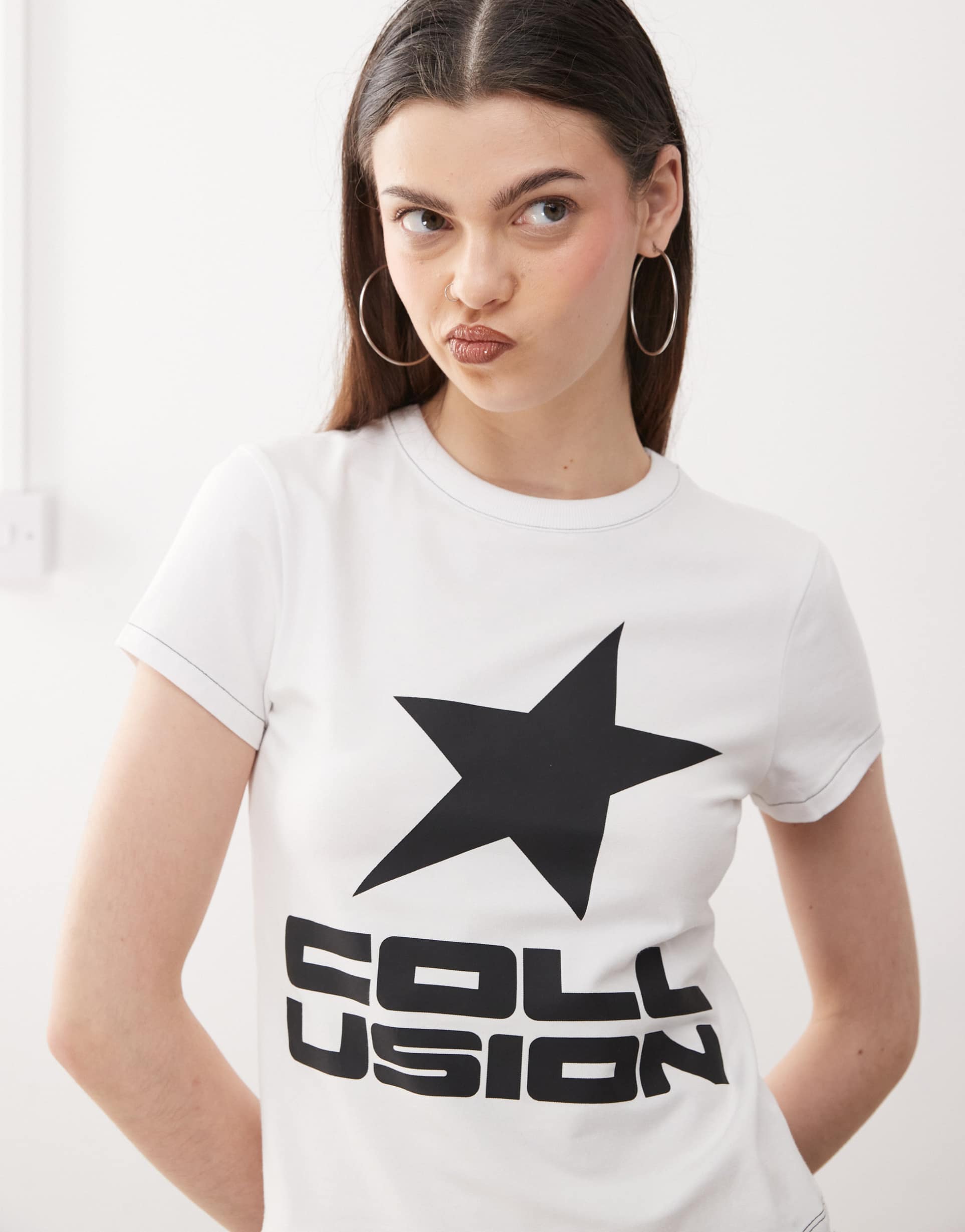 COLLUSION SHORT SLEEVE SHRUNKEN T-SHIRT WITH STAR LOGO