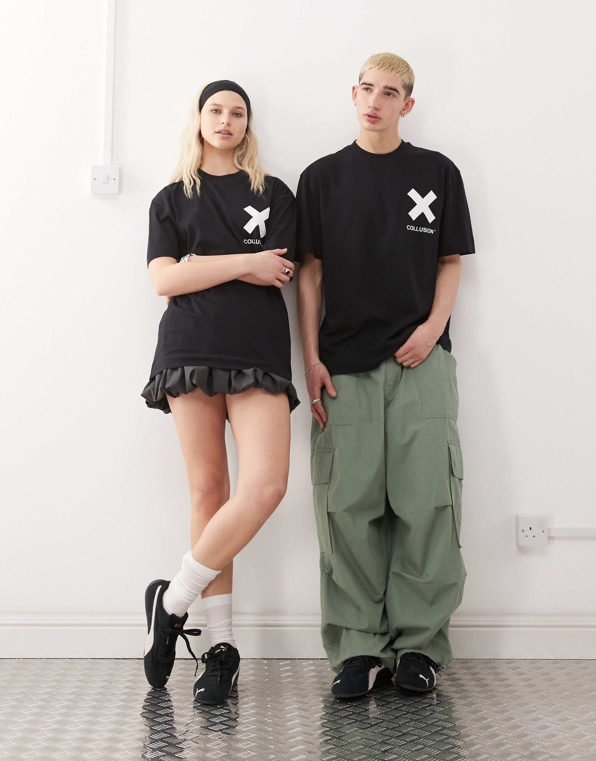 COLLUSION UNISEX LOGO COTTON T-SHIRT IN BLACK