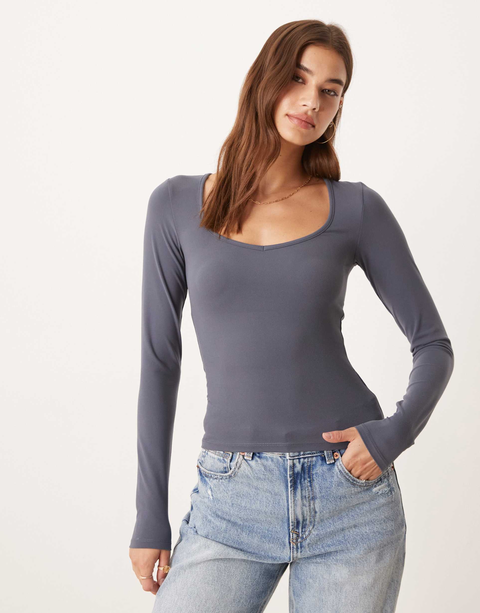 blue long sleeve top