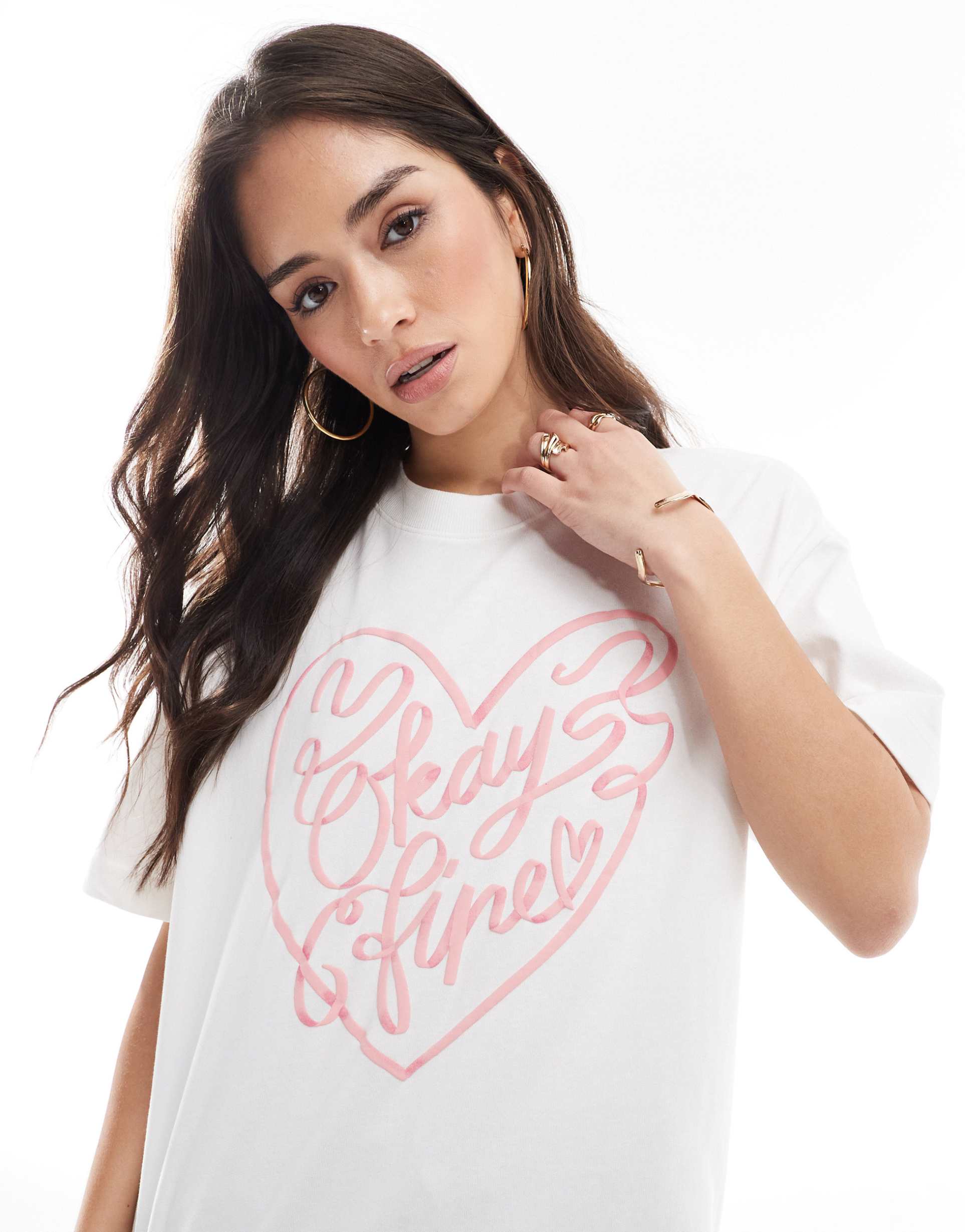 COTTON ON PREMIUM BOXY TEE WITH OKAY FINE GRAPHIC IN WHITE AND PINK