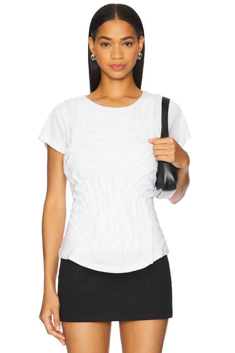 Soft organic cotton jersey with a faux wet look texture defines this fitted shell top. Featuring half sleeves and a classic round neckline, the draped fabric detail flows all over the hip-length silhouette for a modern, minimalist vibe. Easy to style for everyday wear, brunch dates, or casual outings, it offers comfort and subtle sophistication in all weather seasons. The pullover design ensures effortless wearability, making it a versatile addition to your casual chic wardrobe.