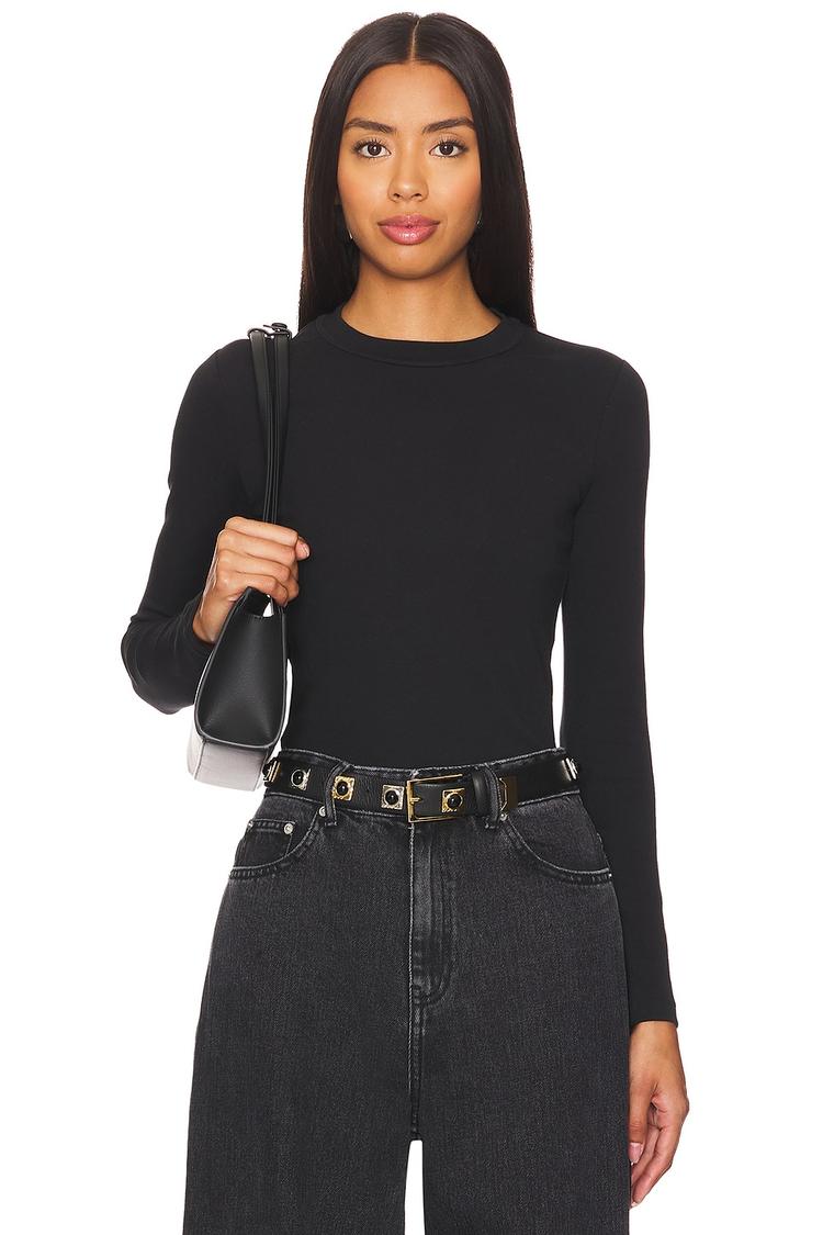 A sleek black fitted tank crafted from a comfortable cotton-elastane jersey blend offers a timeless silhouette with long regular sleeves and a classic crew neck. Its hip-length hemline and pullover styling make it an essential minimalist piece ideal for casual outings, workwear, and travel. This versatile top pairs effortlessly with jeans or layering pieces, delivering understated elegance and comfort suitable for all seasons.