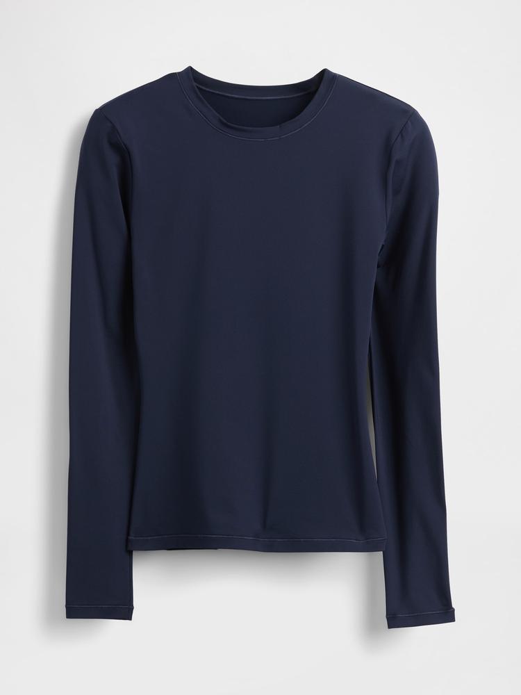 Crisp navy cotton-polyester blend crafts a sleek base layer with a slim fit and classic crew neck. Long regular sleeves and a hip-length hem lend versatile coverage, making it ideal for casual days, lounging at home, or everyday layering. The minimalist solid design complements a wide variety of outfits and seasons, providing a comfortable, streamlined silhouette that pairs effortlessly with jeans, skirts, or under jackets for workwear or weekend errands.
