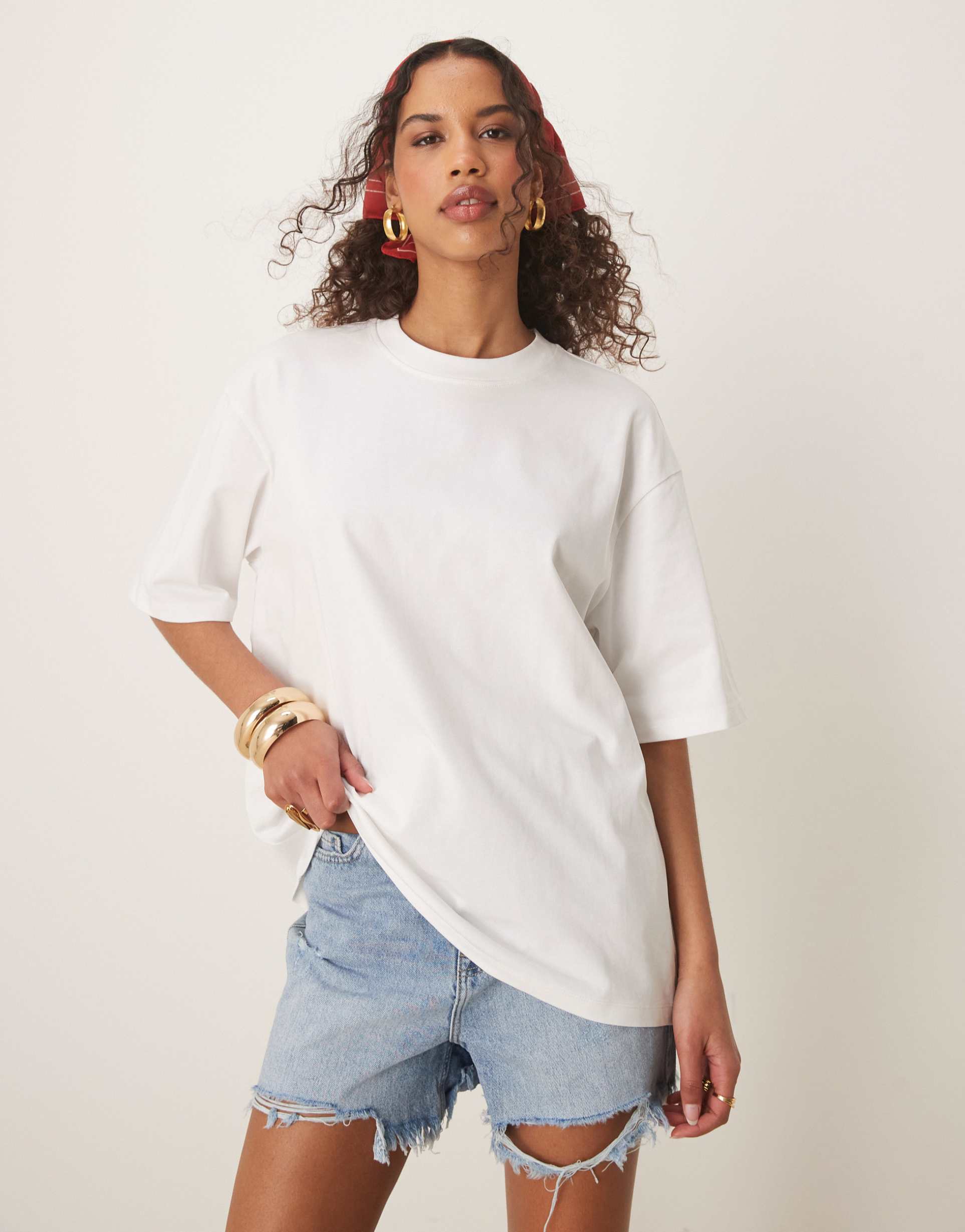 GINA TRICOT SHORT SLEEVE OVERSIZED T-SHIRT IN WHITE