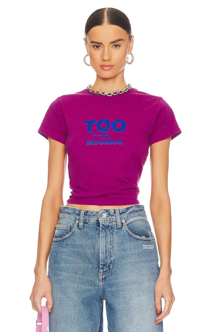 Vibrant magenta cotton jersey fabric lends a fresh and lightweight feel to this fitted tunic-length tee. Featuring a classic crew neck and half-length regular sleeves, it provides casual chic styling perfect for everyday wear, brunch meetups, or relaxed outings. The front blue graphic print adds a subtle pop of contrast, enhancing its minimalist yet trendy appeal. Comfortable and versatile, this Blessed Tee by Guizio blends effortless style with breathable cotton for all-weather spring and summer dressing.