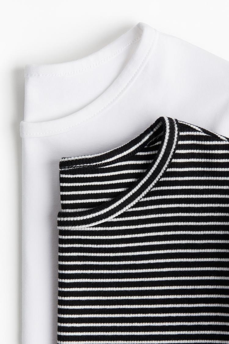 Classic crew neck T-shirts in a convenient 2-pack, featuring one solid white and one black-and-white striped design. Crafted from soft cotton fabric for breathable comfort and a regular fit, these hip-length shirts are perfect for casual, everyday wear throughout all seasons. Their minimalist style and regular short sleeves make them versatile essentials for layering or wearing alone, ideal for casual outings, travel, and relaxed weekends.