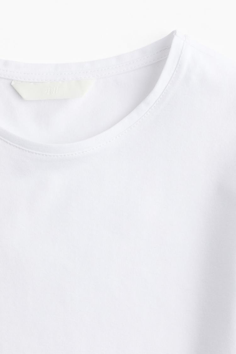 Classic simplicity defines this fitted white T-shirt featuring a clean round neck and smooth fabric texture. Its minimalist style and close fit make it an essential layering piece or stand-alone top for casual outings, everyday wear, or laid-back brunches. The pullover design offers ease and versatility, perfect for all seasons. Pair it with jeans or skirts for a timeless, effortlessly chic look that blends comfort with understated style.