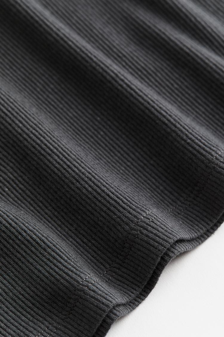 Matte black rib knit fabric defines this fitted T-shirt with a minimalist, casual chic vibe. The close fit contours the body, making it a versatile staple for everyday and casual wear across all seasons. Its solid color and pullover style offer simplicity and ease, pairing effortlessly with layered looks or as a standalone piece. Ideal for relaxed days, coffee runs, or casual gatherings, this T-shirt embodies understated style and comfort.