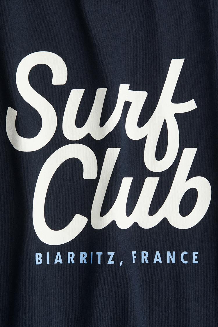 Relaxed and effortlessly cool, this oversized t-shirt in matte dark blue cotton offers a casual chic vibe with its classic crew neckline and regular short sleeves. The hip-length silhouette provides comfortable coverage, perfect for everyday wear, street style, or casual outings. Bold white and light blue graphic print on the front adds a youthful, sporty edge, making it an ideal piece for relaxed days, casual meetups, or weekend errands. Its easy pullover design and soft fabric ensure comfort without compromising style.