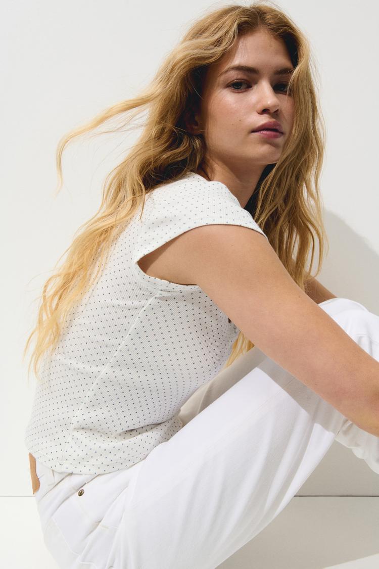 Soft ribbed cotton fabric and a fitted silhouette shape a versatile tank with a square neckline and cap sleeves. This waist-length top brings minimalist charm and casual chic style ideal for warm spring and summer days. Its clean white color and subtle ribbing detail elevate everyday wear for brunch outings, casual errands, or relaxed weekends. The covered back and sleeveless cut offer breathable comfort while maintaining a polished look.