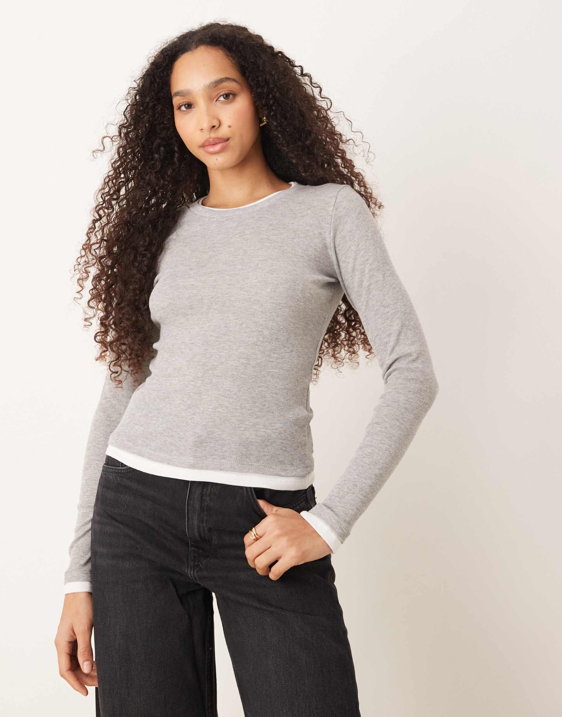 JJXX DOUBLE LAYER LONG SLEEVE TEE IN GRAY