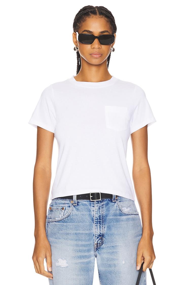 Crisp 100% cotton fabric and a classic crew neck define the Wynn Baby Tee. This cropped, regular fit tee features half sleeves and a clean front breast pocket detail for subtle charm. Its minimalist and casual chic style makes it versatile for everyday wear, casual outings, or travel. The pure white hue complements all wardrobes, while the pullover design offers easy wearability. An essential staple that blends comfort and simplicity effortlessly.