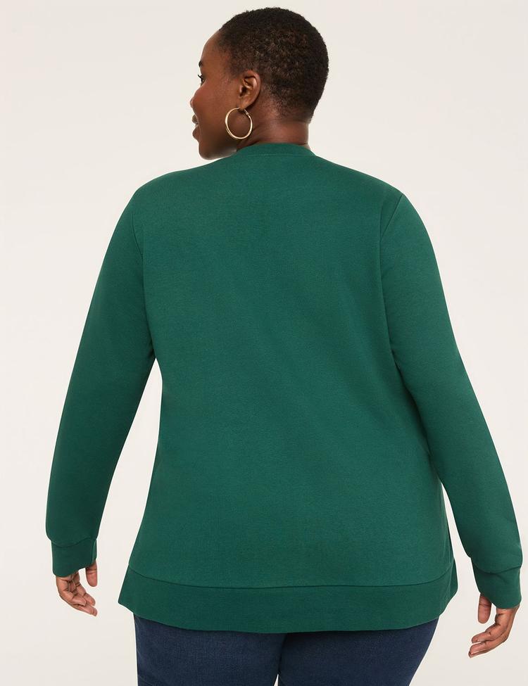 Available in Plus Size Festive fun starts with your favorite characters and a so-soft sweatshirt - you'll love this style with a Grinch "Merry Christmas" graphic. Pair with everything from leggings, to your favorite jeans or a twirlable skirt. FIT: Classic. Designed for curves and a not-too-tight, not-too-loose, just-right fit. Front Body Length From Shoulder: 31" (On Size 18) Longer length is perfect for added coverage. FEATURES: Crew neck Long sleeves Banded cuffs and hem Side slits at hem for ease & movement FABRIC: Ultra-cozy french terry fabric with a not-too-light, not-too-heavy feel. TURN INSIDE OUT, MACHINE WASH COLD WITH LIKE COLORS,ONLY NON-CHLORINE BLEACH WHEN NEEDED, TUMBLE DRY LOW, COOL IRON IFNEEDED, DO NOT IRON DECORATION. 60% COTTON 40% POLYESTER Item Number #413306 Imported Plus Size Top ". Plus Size Grinch Merry Christmas Graphic T-Shirt, in Dark Green, 14/16, Women's, Lane Bryant