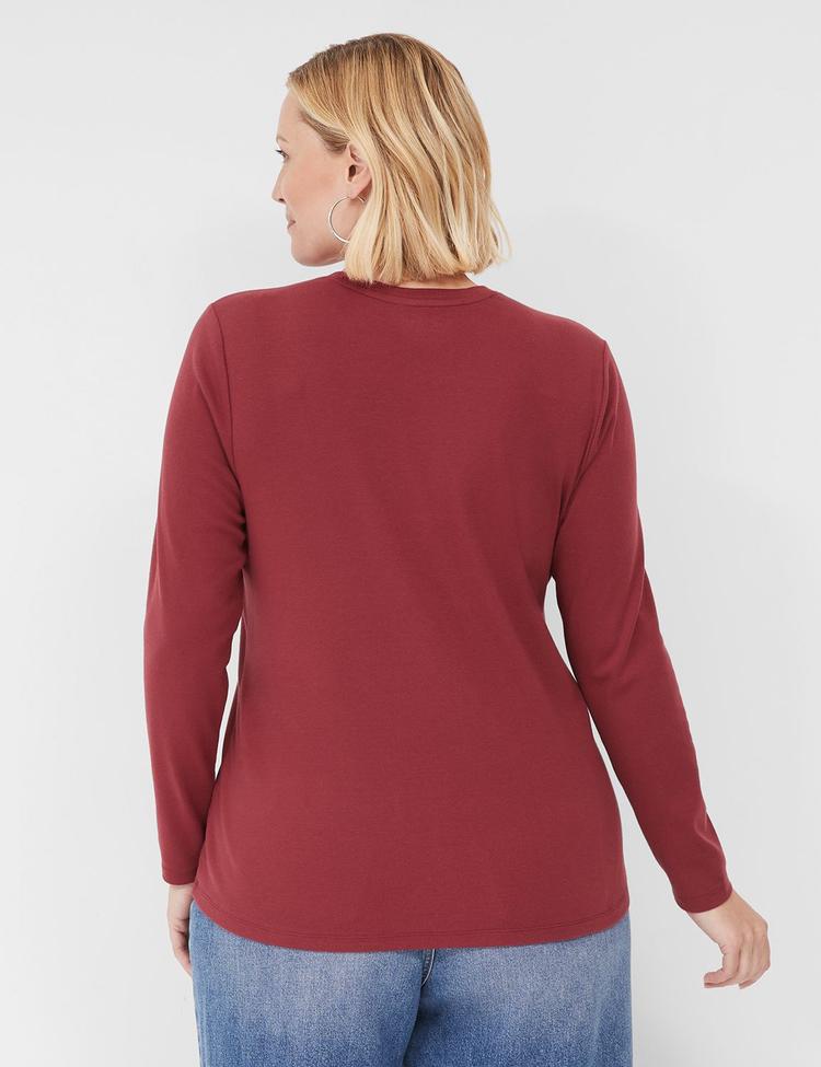 Available in Plus Size Meet your layering hero of the season (and next) - this tee can be layered under sweaters, cardis, blazers, dresses, you name it. FIT: Classic. Designed for curves and a not-too-tight, not-too-loose, just-right fit. Front Body Length From Shoulder: 30" (On Size 18) Extended Length: 31.5" Standard length FEATURES: Crew neck Long sleeves FABRIC: Soft, stretchy ribbed knit Machine Wash 58% Cotton/38% Polyester/4% Spandex Item Number #411838 Imported Plus Size Top ". Plus Size The Long-Sleeve Layering T-Shirt, in Cabernet, 26/28, Women's, Lane Bryant
