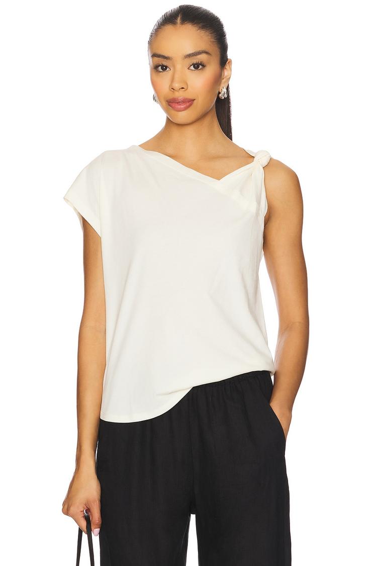 Soft midweight jersey fabric blends cotton and modal for a breathable, relaxed fit that’s perfect for spring and summer. This hip length asymmetric tank features a unique knot detail at the shoulder and a clean off-white hue, combining minimalist style with a modern twist. Its sleeveless design and cap sleeves add airy comfort, making it ideal for casual days, brunch dates, or even polished workwear looks. The slip-on closure and subtle drape enhance ease and sophistication for versatile everyday wear.