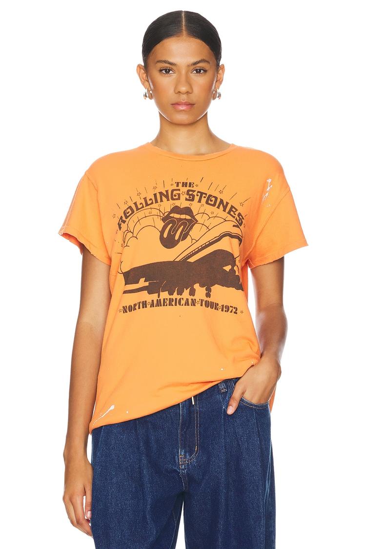 Feel the laid‑back roar of rock ’n’ roll with this The Rolling Stones tee by Madeworn. Crafted in lightweight white‑hot orange cotton jersey, it drapes in a relaxed hip‑length silhouette with a classic crew neck and short regular sleeves. A bold front graphic delivers a vintage Stones motif in black, finished with intentionally distressed trim for a retro, concert‑tee vibe. Easy to wear with denim for daytime adventures or dressed up with a leather jacket for nights out, this versatile tee blends iconic style with everyday comfort. Effortless, iconic and endlessly wearable.