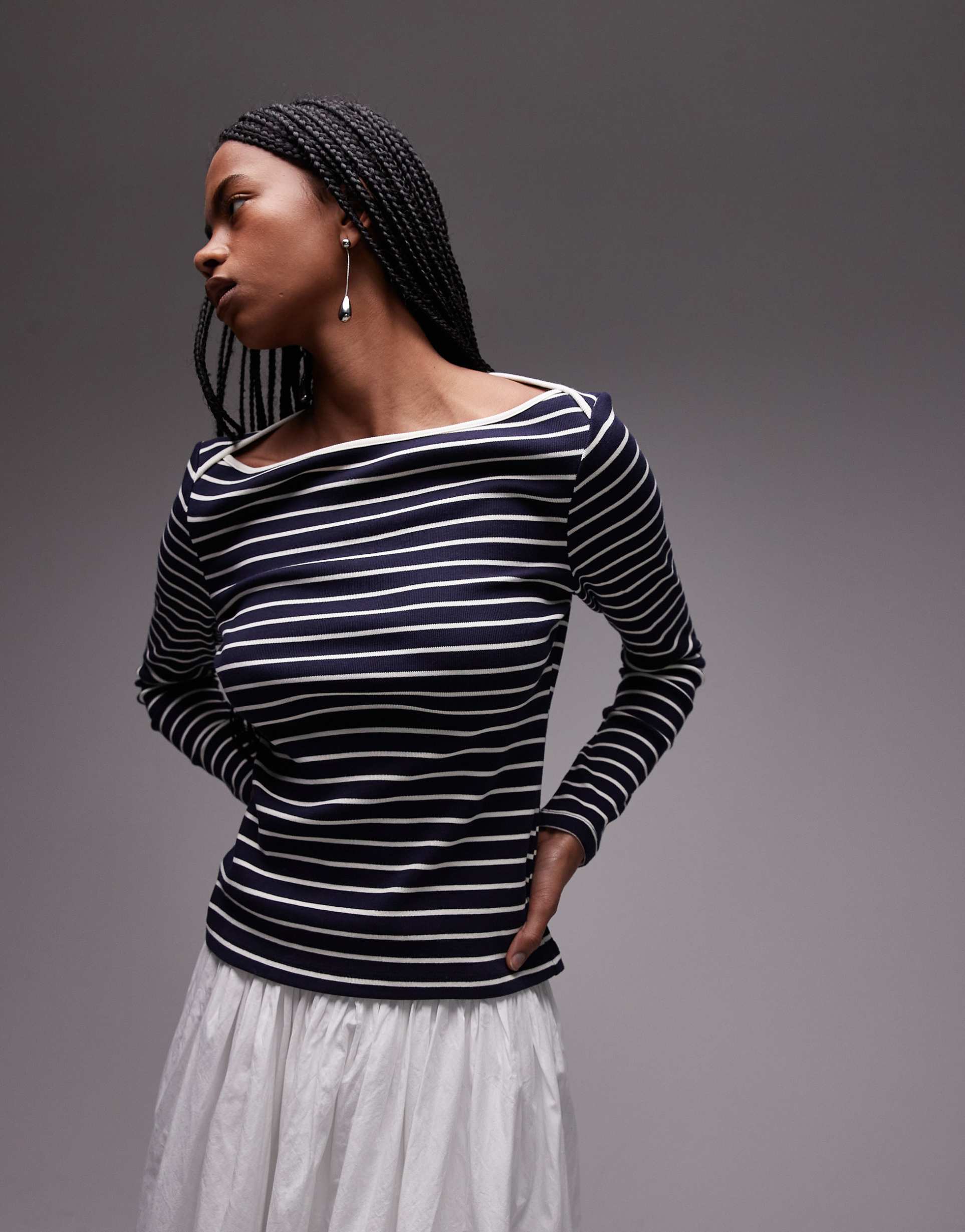striped boat neck top