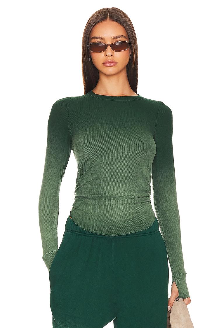 Softly contoured in a close fit, this long sleeve shell top features a classic crew neck and a hip-length curved hem with subtle fraying for an effortless touch. Crafted from a lightweight viscose-spandex jersey, it offers breathable comfort and gentle stretch. The thumbhole cut-outs add a modern, functional detail, perfect for layering or solo wear. Ideal for casual outings, workwear, or travel, this minimalist piece blends versatility with understated style for year-round wear.