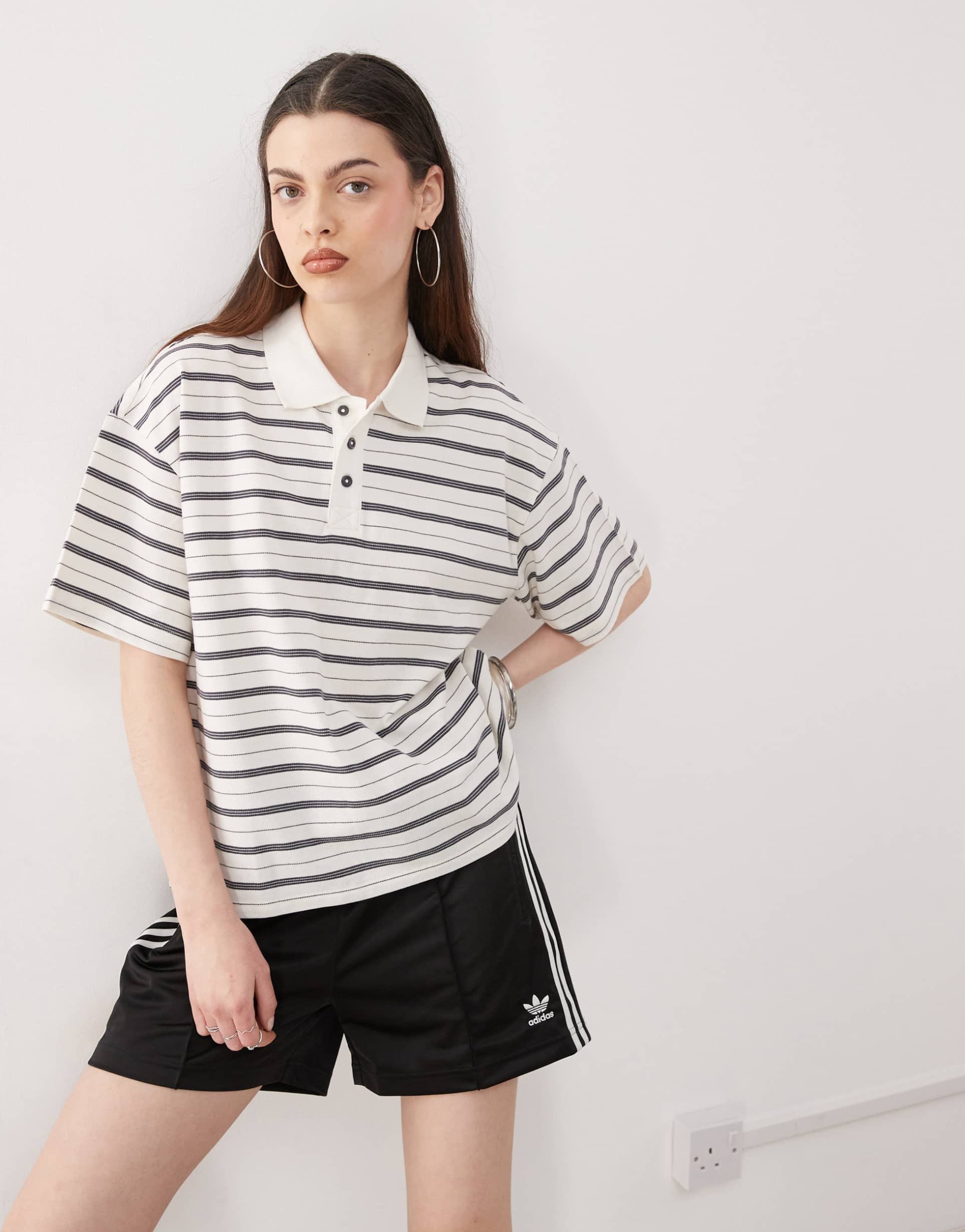MONKI BOXY FIT POLO SHIRT IN WHITE AND BLACK STRIPE