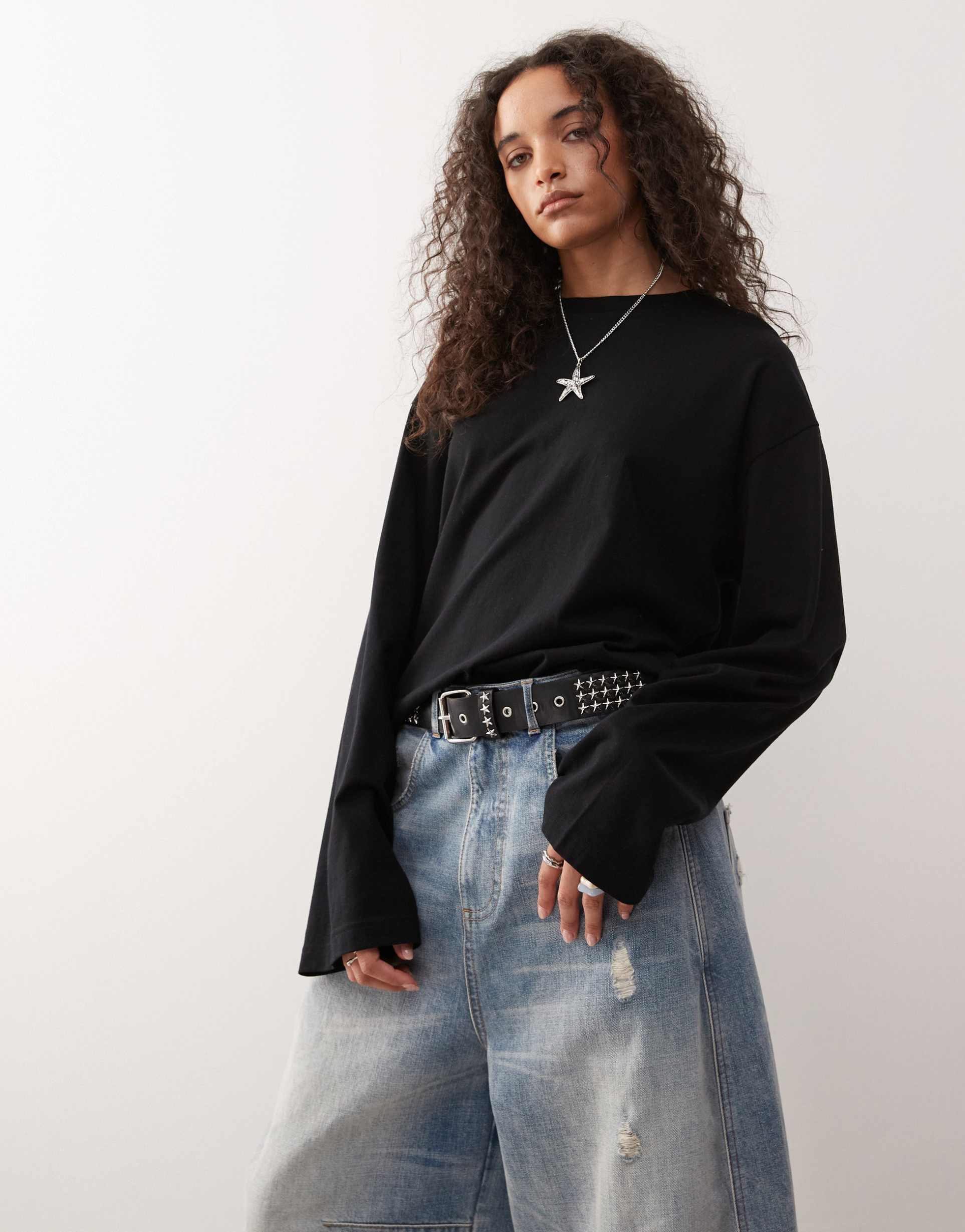 MONKI OVERSIZED LONG SLEEVE T-SHIRT WITH SIDE SLITS IN BLACK