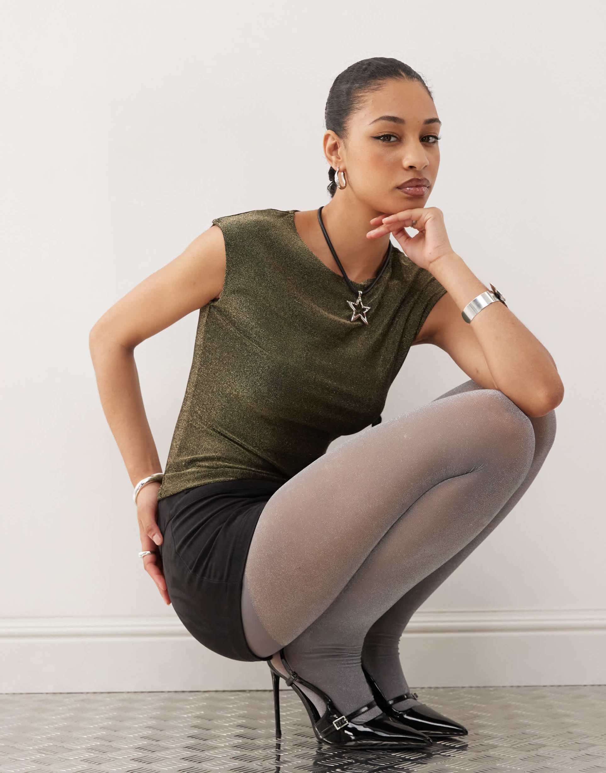 Tops by MotelEvery wardrobe needs oneMetallic finishCrew neckCap sleevesRegular fitProduct Code: 141067908Main: 50% Nylon, 45% Polyester, 5% Spandex.