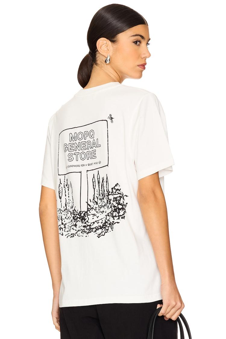 Feel the effortless ease of everyday luxury with the General Store T‑Shirt from Museum of Peace and Quiet. Crafted in lightweight 100% cotton jersey, this white tee is built for comfort with a relaxed fit, classic crew neck, and short half sleeves that graze the arm. A subtle chest graphic and a larger back print create a cool, graphic-informed look that stays true to minimalist style. Hip-length and pullover in design, it’s endlessly versatile—from denim and sneakers for casual days to joggers for a weekend brunch or travel day. A timeless staple that elevates any laid-back outfit.