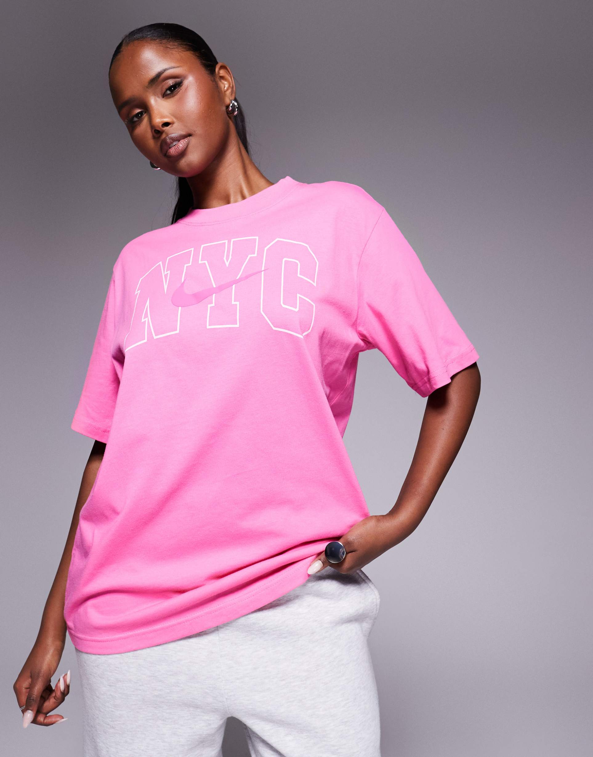 NIKE ESSENTIALS BOYFRIEND FIT GRAPHIC T-SHIRT IN PINK
