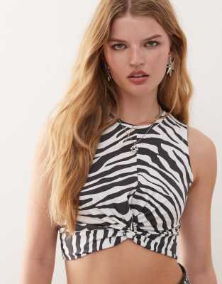 NOISY MAY TWIST FRONT CROP TOP IN ZEBRA PRINT
