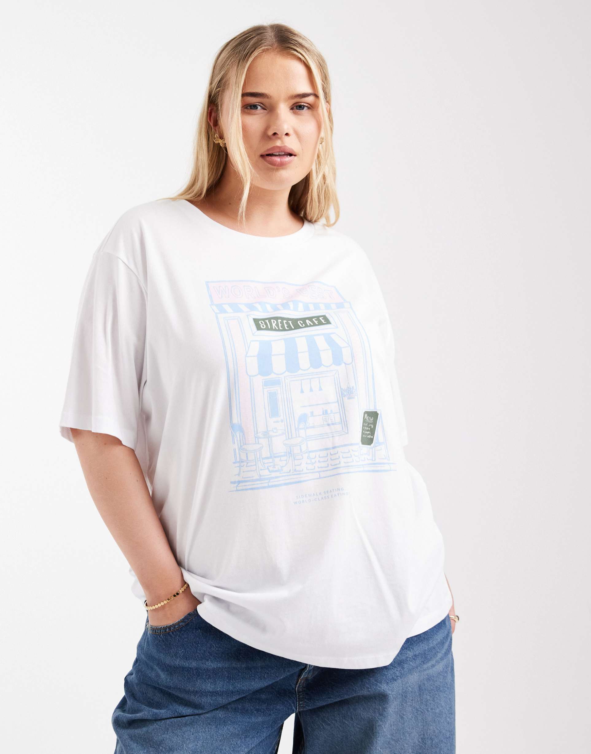 ONLY CURVE CAFE GRAPHIC OVERSIZED T-SHIRT IN WHITE
