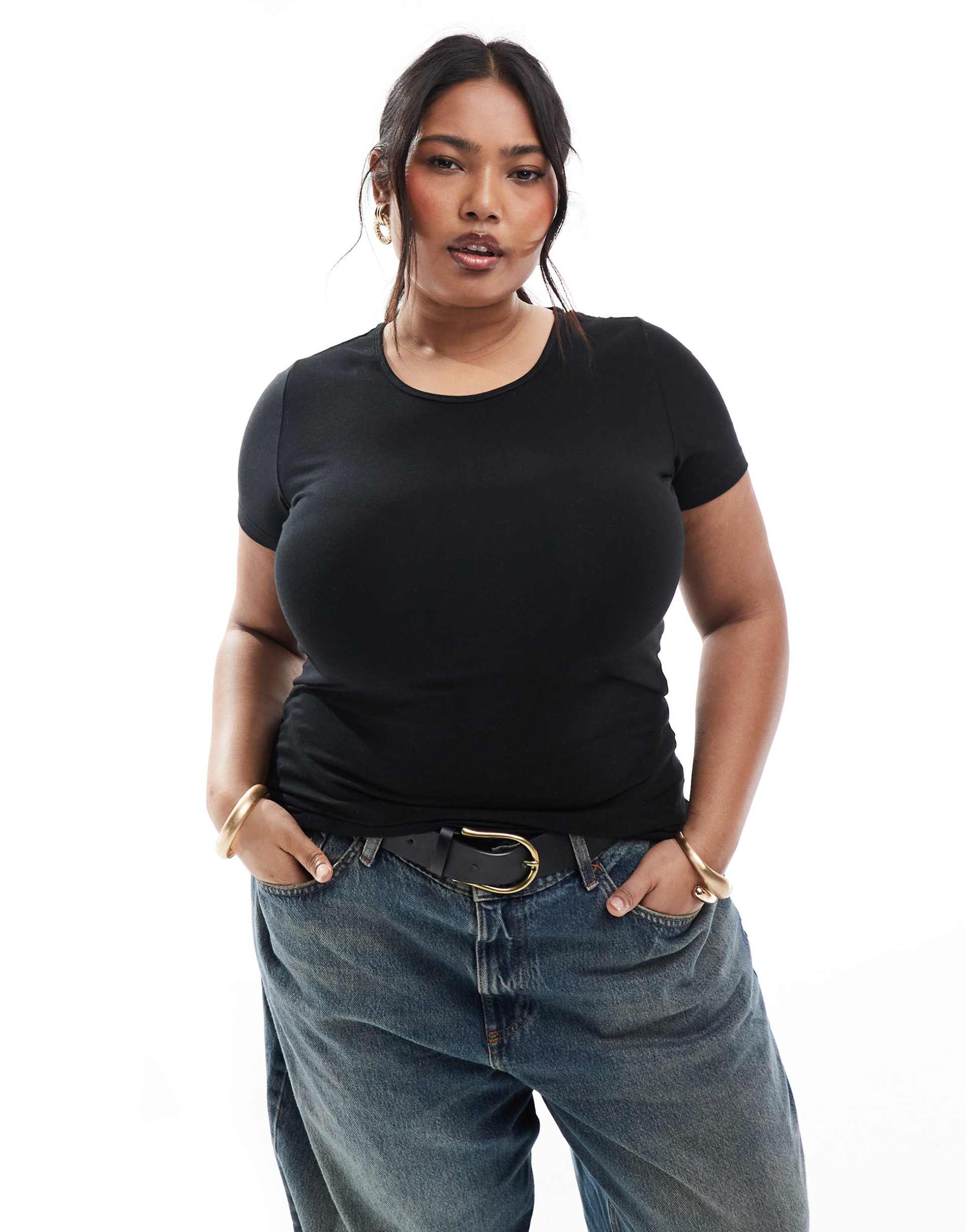 ONLY CURVE CREW NECK T-SHIRT IN BLACK