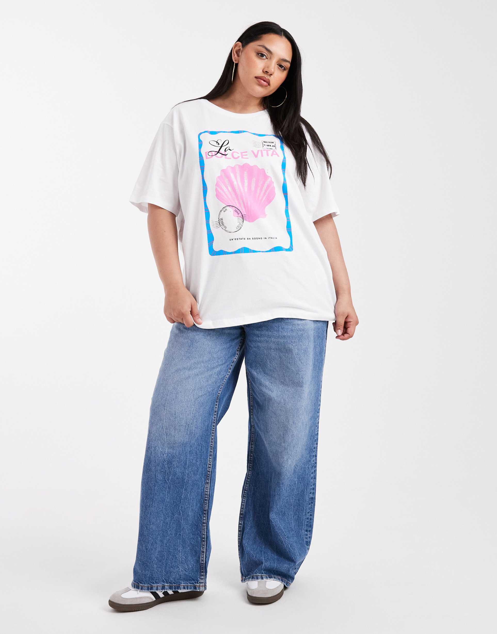 ONLY CURVE DOLCE VITA GRAPHIC OVERSIZED T-SHIRT IN WHITE