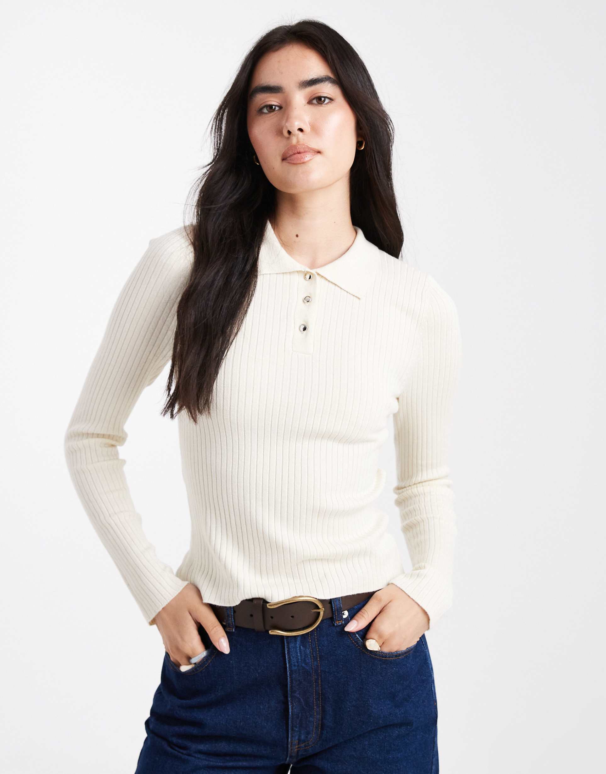 ribbed long sleeve polo