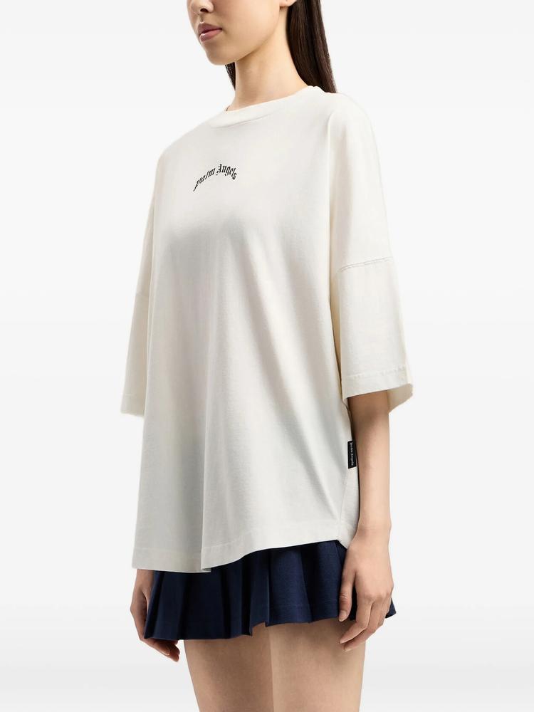 PALM ANGELS CURVED LOGO OVER TEE WHITE T-SHIRT - WOMEN