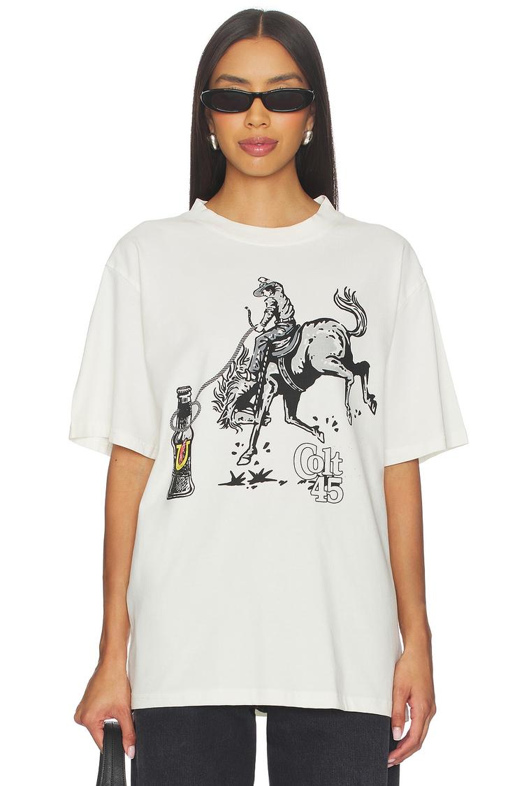 Soft, midweight cotton jersey shapes this loose-fitting tunic tee featuring classic half sleeves and a crew neckline. Its crisp white base contrasts sharply with a bold black graphic on the front, evoking a timeless street style vibe. The hip-length hem and relaxed fit make it an easy layering piece perfect for casual outings, everyday wear, or streetwear-inspired looks. Durable and breathable, this versatile tee blends comfort and iconic graphic appeal for all-season wear.