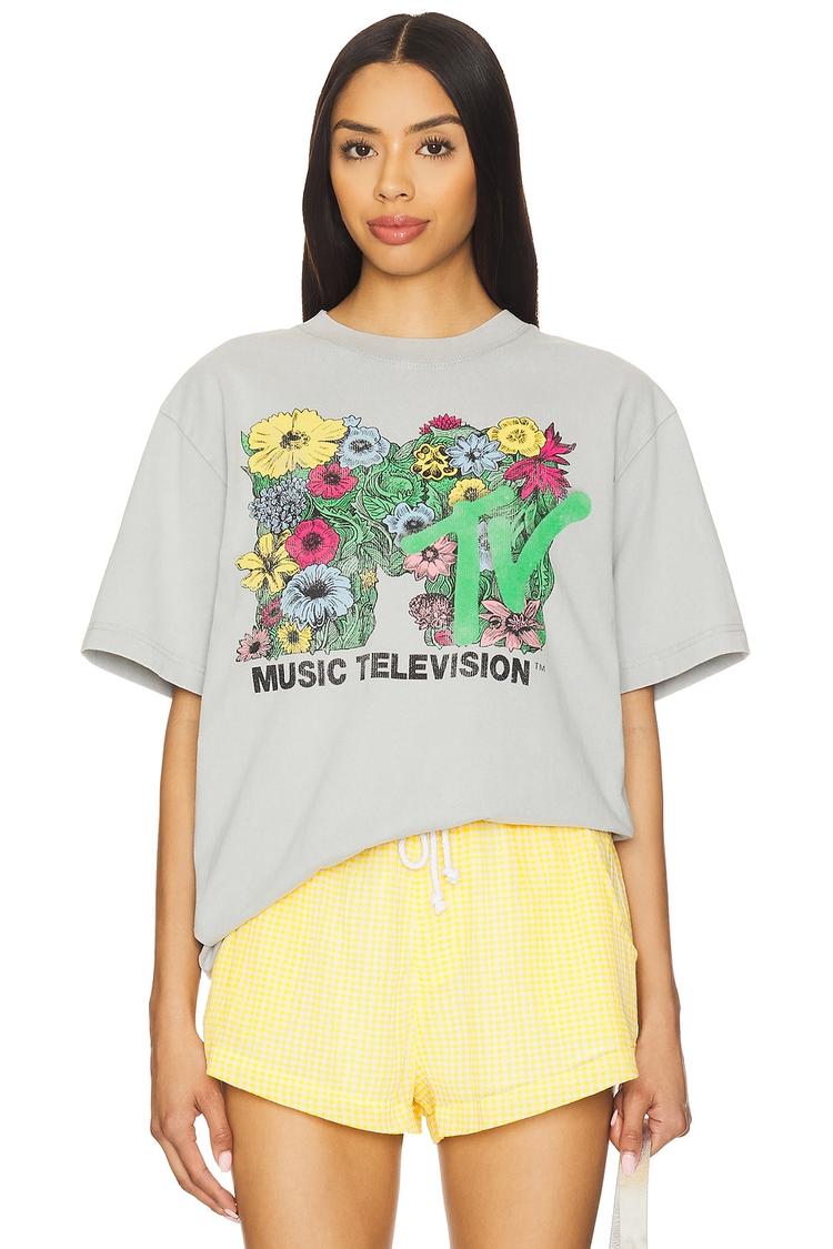 Soft, midweight cotton fabric and a relaxed, loose boxy fit define this MTV Floral Boxy Tee. Designed with a classic crew neck and half sleeves, this hip-length tee features a colorful floral and logo print on the front, bringing a vintage street style vibe. Its covered back and pullover closure make it easy to wear for casual outings, streetwear looks, and everyday comfort. The gray base color complements the vibrant yellow, green, and pink hues in the graphic, making it a standout piece for versatile all-weather styling.