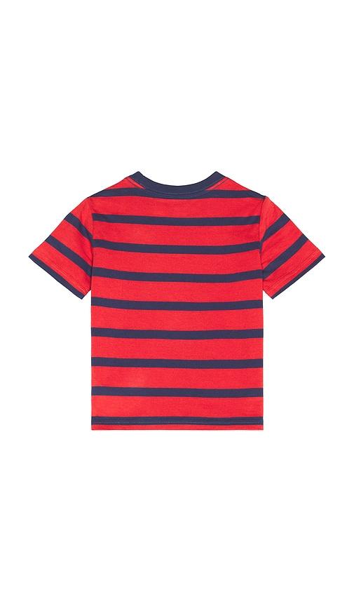 POLO RALPH LAUREN JERSEY KNIT STRIPED CREWNECK T-SHIRT IN RED.