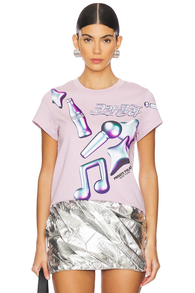 Soft cotton jersey and a regular fit shape make this cropped baby tee a versatile staple. Featuring a crew neckline and half sleeves with a casual silhouette, it showcases eye-catching metallic 3D graphic prints on both front and back. Its light pink hue paired with bold metallic accents brings a modern street style vibe perfect for casual outings, streetwear looks, or everyday wear. The pull-on design adds comfort and ease, making it ideal for spring, summer, or autumn days.