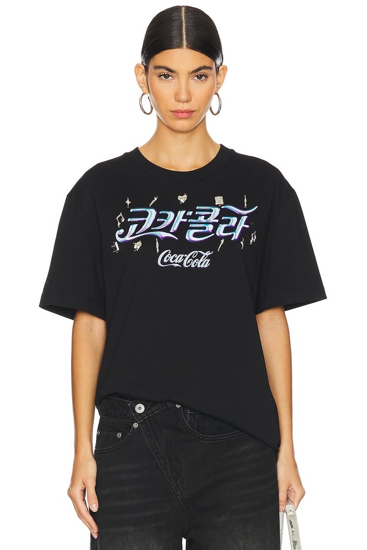 Embrace effortless street-ready cool with this Silver Charm T-shirt. Crafted in 100% cotton heavyweight jersey, the black tee drapes in a relaxed, pullover silhouette with a classic crew neck and short regular sleeves. A bold front graphic sits atop blue and white tones, accented by embellished silver-tone charms that catch the light with every move. The hip-length hem keeps the look laid-back and versatile, perfect worn with distressed denim, leather pants, or athleisure staples. A wardrobe workhorse for everyday ease, it pairs just as well with sneakers or heels for smart-casual polish.